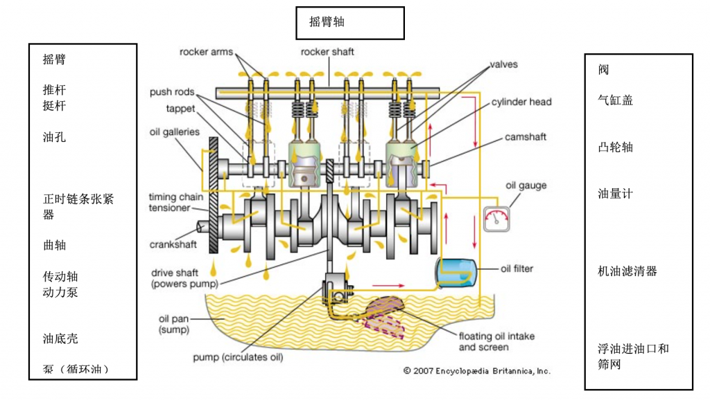 发动机是一种非常复杂的机械。但为了进行更大画面的介绍,我们来看看润滑油在发动机中的工作情况: